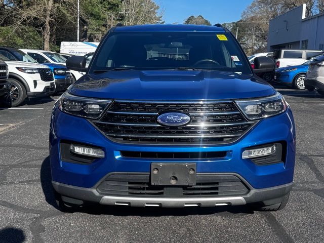 Certified. Atlas Blue Metallic 2020 Ford Explorer XLT 4WD 10-Speed Automatic 2.3L EcoBoost I-4 Ford Certified, 4WD, 1st & 2nd Row Heated Seats, 20" Premium Painted Aluminum Wheels, 3.58 Non-Limited-Slip Rear Axle Ratio, 3rd row seats: bench, 4-Wheel Disc Brakes, 6 Speakers, ABS brakes, ActiveX Captain's Chairs, Air Conditioning, Alloy wheels, AM/FM radio: SiriusXM, AM/FM Stereo, Auto High-beam Headlights, Automatic temperature control, Brake assist, Bumpers: body-color, Comfort Package, Compass, Delay-off headlights, Driver door bin, Driver vanity mirror, Dual front impact airbags, Dual front side impact airbags, Electronic Stability Control, Emergency communication system: SYNC 3 911 Assist, Equipment Group 202A, Evasive Steering Assist, Exterior Parking Camera Rear, Ford Co-Pilot360 Assist+, FordPass Connect, Four wheel independent suspension, Front anti-roll bar, Front Bucket Seats, Front Center Armrest, Front dual zone A/C, Front License Plate Bracket, Front reading lights, Fully automatic headlights, Heated door mirrors, Heated Steering Wheel, Illuminated entry, Intelligent Adaptive Cruise Control, Knee airbag, Leather steering wheel, LED Fog Lamps, Low tire pressure warning, Occupant sensing airbag, Outside temperature display, Overhead airbag, Overhead console, Panic alarm, Passenger door bin, Passenger vanity mirror, Power door mirrors, Power driver seat, Power Liftgate, Power passenger seat, Power steering, Power windows, Rear air conditioning, Rear anti-roll bar, Rear reading lights, Rear window defroster, Rear window wiper, Remote keyless entry, Remote Start System, Roof rack: rails only, Security system, Speed control, Speed-sensing steering, Speed-Sensitive Wipers, Split folding rear seat, Spoiler, Steering wheel mounted audio controls, SYNC 3 Communications & Entertainment System, SYNC 3/Apple CarPlay/Android Auto, Tachometer, Telescoping steering wheel, Tilt steering wheel, Traction control, Trip computer, Unique Cloth Captain's Chairs, Variably intermittent wipers, Voice-Activated Touchscreen Navigation System, Wheels: 18" 5-Spoke Sparkle Silver-Painted Alum, 4WD.