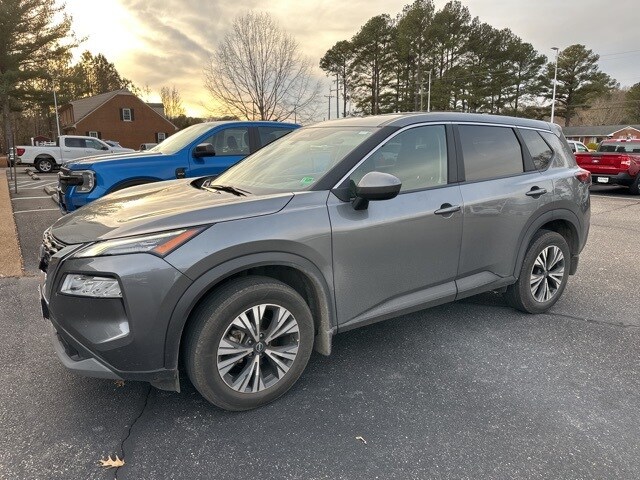 Certified. Gun Metallic 2023 Nissan Rogue SV FWD CVT with Xtronic 1.5L I3 Turbocharged DOHC 12V LEV3-ULEV50 201hp Ford Blue Advantage: Blue Certified Certified, 18" Aluminum Alloy Wheels, 4-Wheel Disc Brakes, 5.604 Axle Ratio, 6 Speakers, ABS brakes, Air Conditioning, Alloy wheels, AM/FM Radio, AM/FM radio: SiriusXM, Auto High-beam Headlights, Automatic temperature control, Black Splash Guards (Set of 4), Brake assist, Bumpers: body-color, Chrome Rear Bumper Protector, Cloth Seat Trim, Delay-off headlights, Driver door bin, Driver vanity mirror, Dual front impact airbags, Dual front side impact airbags, Electronic Stability Control, Emergency communication system: NissanConnect Services, Floor Mats w/1-Piece Cargo Area Protector, Four wheel independent suspension, Front anti-roll bar, Front Bucket Seats, Front Center Armrest, Front dual zone A/C, Front reading lights, Fully automatic headlights, Heated door mirrors, Illuminated entry, Knee airbag, Low tire pressure warning, NissanConnect featuring Apple CarPlay and Android Auto, Occupant sensing airbag, Outside temperature display, Overhead airbag, Overhead console, Panic alarm, Passenger door bin, Passenger vanity mirror, Power door mirrors, Power driver seat, Power steering, Power windows, Radio data system, Rear anti-roll bar, Rear Parking Sensors, Rear seat center armrest, Rear side impact airbag, Rear window defroster, Rear window wiper, Remote keyless entry, Speed control, Speed-Sensitive Wipers, Split folding rear seat, Spoiler, Steering wheel mounted audio controls, Tachometer, Telescoping steering wheel, Tilt steering wheel, Traction control, Trip computer, Variably intermittent wipers, **LOCAL TRADE**.