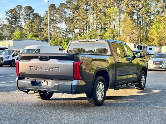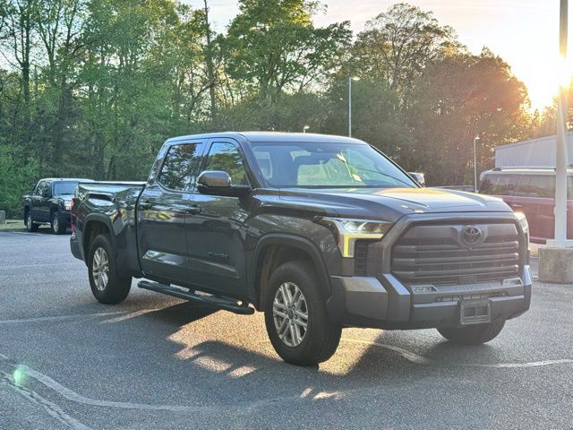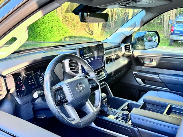 Magnetic Gray Metallic 2023 Toyota Tundra SR5 4WD 10-Speed Automatic 3.4L V6 4WD, Boulder Premium Synthetic, 18" Alloy Wheels, 3.31 Axle Ratio, 32 Gallon Fuel Tank, 4-Way Adjustable Front Bucket Seats, 4-Wheel Disc Brakes, 8-Way Power-Adjustable Heated Front Seats, 9 Speakers, ABS brakes, Advanced Technology Package, Air Conditioning, All Weather Floor Liners (TMS), Alloy wheels, AM/FM radio: SiriusXM, Apple CarPlay/Android Auto, Auto High-beam Headlights, Automatic temperature control, Bed Step (TMS), Black Dual-Step Running Board (TMS), Black Emblem Overlay (TMS), Blind Spot Monitor, Blind Spot Monitor w/Lane Change Assist, Brake assist, Bumpers: body-color, Delay-off headlights, Driver door bin, Driver vanity mirror, Dual front impact airbags, Dual front side impact airbags, Electronic Stability Control, Emergency communication system: Safety Connect (10-year trial), Exhaust Tip - Chrome (TMS), Exterior Parking Camera Rear, Fabric Seat Trim, Front anti-roll bar, Front Bucket Seats, Front Center Armrest, Front fog lights, Front reading lights, Front wheel independent suspension, Fully automatic headlights, Heated door mirrors, Heated Leather Steering Wheel, Illuminated entry, Knee airbag, Load-Leveling Rear Air Suspension, Low tire pressure warning, Mini-Tie Down (TMS), Multi-Terrain Back Monitor, Occupant sensing airbag, Outside temperature display, Overhead airbag, Overhead console, Panic alarm, Panoramic View Back Monitor, Parking Support Alert/Brake, Passenger door bin, Passenger vanity mirror, Power Color-Keyed Folding Outside Mirrors, Power door mirrors, Power steering, Power windows, Radio data system, Radio: Audio Multimedia System, Radio: Premium Audio, Rear reading lights, Rear step bumper, Rear window defroster, Remote keyless entry, Safety Connect, Security system, SofTex Seat Trim, Speed control, Speed-sensing steering, Split folding rear seat, SR5 Premium Package, Stainless Steel Door Edge Guard (TMS), Steering wheel mounted audio controls, Tachometer, Telescoping steering wheel, Tilt steering wheel, Towing Package, Traction control, Trip computer, USB Phone Charging Cable Kit (TMS), Variably intermittent wipers, Voltmeter, Wheel Locks (TMS), 4WD, Boulder Premium Synthetic.
