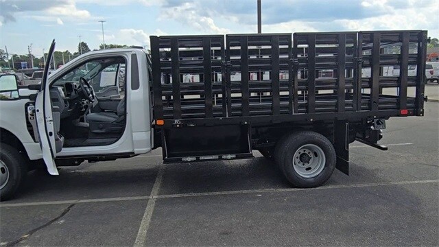 2025 Ford F-350SD XL 4WD Oxford White**Reg Cab**7.3L V8**Features a 12 ft Flatbed Stake Body**14,000 GVWR**Snow Plow Prep Package**Skid Plates**Trailer Brake Controller**Back Up Alarm**Rear View Camera**42" Sides and Head Board**2 Piece Barn Door**2 Under Body tool Boxes 18"x18"x48"