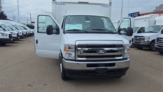 2026 Ford E-450SD RWD Oxford White**14' Dura Cube Max "High Roof Enclosed Service Utility Body"** 14,500 GVWR**The E-450 Chassis has the Power Equipment Group (Mirrors and Windows)**Cruise Control**55 Gallon Fuel Tank**7.3L V8**The DuraCube is 14' L x 96" W x 78" interior height**Bulkhead w/ Sliding Door**70/30 Split Barn Doors in the rear**Power Locking System**LED Marker Lights and Tail Lights** LED Dome Lighting **Rubber Flooring**Ladder Rack**Aluminum Catwalk**Rear View Camera**