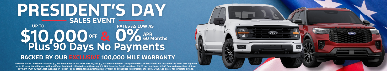 Some of our new vehicles may have financing or lease specials available. These specials help you get behind the wheel of a Ford you love. You can find them through our finance center or by checking out vehicle pages. These specials may impact a specific model, trim level, or lease/loan length.