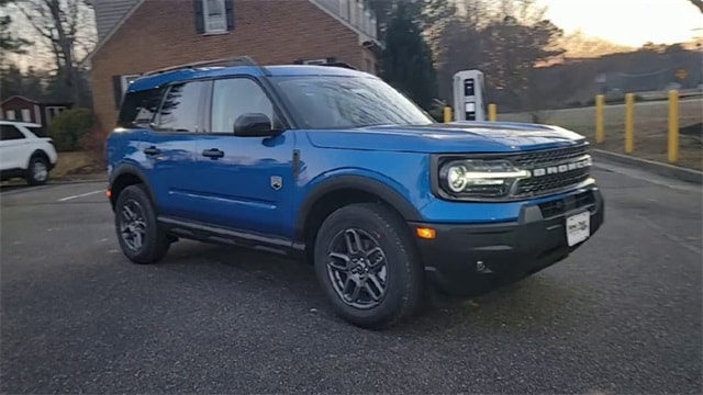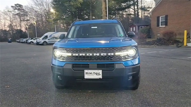 Velocity Blue Metallic 2025 Ford Bronco Sport Big Bend 4WD 8-Speed Automatic 1.5L EcoBoost 4-Wheel Disc Brakes, 6 Speakers, ABS brakes, Air Conditioning, Alloy wheels, AM/FM radio: SiriusXM, AM/FM Stereo, Auto High-beam Headlights, Automatic temperature control, Brake assist, Cargo Management System (Shelf/Divider/Table), Cloth w/Easy-to-Clean Front Bucket Seats, Compass, Convenience Package, Delay-off headlights, Driver door bin, Driver vanity mirror, Dual front impact airbags, Dual front side impact airbags, Electronic Stability Control, Emergency communication system: SYNC 4 911 Assist, Four wheel independent suspension, Front anti-roll bar, Front Bucket Seats, Front Center Armrest, Front Driver/Passenger Seat Back Map Pockets, Front License Plate Bracket, Front reading lights, Fully automatic headlights, Heated 8-Way Power Driver's Seat, Heated door mirrors, Illuminated entry, Knee airbag, LED Fog Lamps, Low tire pressure warning, Occupant sensing airbag, Outside temperature display, Overhead airbag, Overhead console, Panic alarm, Passenger door bin, Passenger vanity mirror, Power door mirrors, Power steering, Power windows, Premium Wrapped Steering Wheel, Radio data system, Rear anti-roll bar, Rear Parking Sensors, Rear reading lights, Rear seat center armrest, Rear window defroster, Rear window wiper, Remote keyless entry, Security system, SiriusXM, Speed control, Speed-sensing steering, Speed-Sensitive Wipers, Split folding rear seat, Steering wheel mounted audio controls, SYNC 4 w/Enhanced Voice Recognition, Tachometer, Telescoping steering wheel, Tilt steering wheel, Traction control, Trip computer, Universal Garage Door Opener (UGDO), Variably intermittent wipers, Wheels: 17" Carbonized Gray-Painted Aluminum.