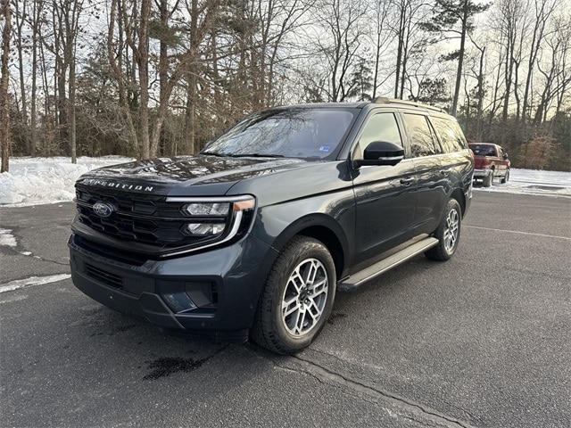 Stone Blue Metallic 2025 Ford Expedition Active 4WD 10-Speed Automatic EcoBoost 3.5L V6 GTDi DOHC 24V Twin Turbocharged 4WD, 110V/400W AC Power Outlet, 26mm Engine Radiator, 2nd Row Power-Folding Captain's Chairs, 3.73 Axle Ratio, 360-Degree Zone Lighting, 3rd Row Flexible Seating, 3rd row seats: split-bench, 3rd Row Vinyl Seats, 4-Door Intelligent Access (Lock/Unlock), 4-Wheel Disc Brakes, 6 Speakers, ABS brakes, ActiveX Front Heated Captain's Chairs, Air Conditioning, Alloy wheels, AM/FM radio: SiriusXM with 360L, Apple CarPlay/Android Auto, Auto High-beam Headlights, Auto-dimming Rear-View mirror, Automatic temperature control, BlueCruise Equipped, Brake assist, Bumpers: body-color, Cloth Front Captain's Chairs, Compass, Delay-off headlights, Driver door bin, Driver State Detection, Driver vanity mirror, Dual front impact airbags, Dual front side impact airbags, Electronic Stability Control, Emergency communication system: 911 Assist, Equipment Group 202A High Package, Exterior Parking Camera Rear, Flex Powered Console, Floor Liners, Front & Second Rows (Tray Style), Ford Split Gate, Four wheel independent suspension, Front anti-roll bar, Front Bucket Seats, Front Center Armrest, Front dual zone A/C, Front reading lights, Front Side Laminated Glass, Fully automatic headlights, Heated door mirrors, Heated Steering Wheel, Heavy-Duty Trailer Tow, Illuminated entry, Integrated Trailer Brake Control, Intersection Assist, Low tire pressure warning, Memory Driver Seat, Navigation System, Occupant sensing airbag, Outside temperature display, Overhead airbag, Overhead console, Panic alarm, Passenger door bin, Passenger vanity mirror, Power door mirrors, Power driver seat, Power Panoramic Vista Roof w/Power Sunshade, Power passenger seat, Power steering, Power Tilt/Telescopic Steering Wheel w/Memory, Power windows, Power-Folding Sideview Mirrors w/Autofold, Radio data system, Radio: AM/FM Stereo w/MP3 Capable, Rain Sensing Wipers, Rear air conditioning, Rear anti-roll bar, Rear reading lights, Rear window defroster, Rear window wiper, Reclining 3rd row seat, Remote keyless entry, SecuriCode Keyless Entry Pad, Security system, SiriusXM w/360L, Speed control, Speed-sensing steering, Speed-Sensitive Wipers, Split folding rear seat, Spoiler, Steering wheel mounted audio controls, Tachometer, Telescoping steering wheel, Tilt steering wheel, Traction control, Trip computer, Universal Garage Door Opener, USB Ports, Variably intermittent wipers, Voltmeter, Wheels: 18" Dark Alloy Painted Aluminum, Wheels: 20" Carbonized Gray Bright Machined Aluminum, Wireless Charging Pad, 4WD.