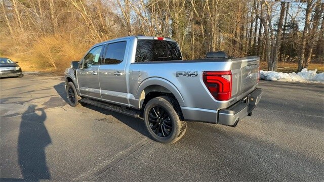 Iconic Silver Metallic 2025 Ford F-150 Lariat 4WD 10-Speed Automatic 3.5L V6 EcoBoost 4WD, 2nd Row Heated Seats, 4 Pickup Box Tie-Down Plates, 4-Wheel Disc Brakes, 4x4 FX4 Off-Road Bodyside Decal, 6" Extended Running Boards, 8 Speakers, ABS brakes, ActiveX Trimmed Bucket Seats, Adjustable pedals, Air Conditioning, Alloy wheels, AM/FM radio: SiriusXM with 360L, Ambient Lighting - Ice Blue Color Only, Auto High-beam Headlights, Auto-dimming door mirrors, Auto-dimming Rear-View mirror, Automatic temperature control, Bed Utility Package, Brake assist, Bumpers: chrome, Chrome wheels, Compass, Console Worksurface, Delay-off headlights, Driver door bin, Driver vanity mirror, Dual front impact airbags, Dual front side impact airbags, Electronic Stability Control, Emergency communication system: SYNC 4 911 Assist, Equipment Group 502A High, Front anti-roll bar, Front Bucket Seats, Front Center Armrest, Front dual zone A/C, Front fog lights, Front License Plate Bracket, Front reading lights, Front wheel independent suspension, Fully automatic headlights, FX4 Off-Road Package, Garage door transmitter, Heads-Up Display, Heated door mirrors, Heated front seats, Heated steering wheel, Hill Descent Control, Illuminated Driver & Passenger Visors, Illuminated entry, Internet access capable: FordPass Connect 5G, LED Box Lighting, Low tire pressure warning, Memory seat, Mobile Office Package, Monotube Rear Shocks, Navigation system: Connected Navigation, Occupant sensing airbag, Off-Road Tuned Front Shock Absorbers, Outside temperature display, Overhead airbag, Overhead console, Panic alarm, Partitioned Lockable Rear Storage, Passenger door bin, Passenger vanity mirror, Pedal memory, Power door mirrors, Power driver seat, Power passenger seat, Power steering, Power Tailgate, Power windows, Power-Sliding Rear Window, Pro Access Tailgate, Radio data system, Radio: B&O Sound System by Bang & Olufsen, Radio: B&O Unleashed Sound System by Bang & Olufsen, Rain sensing wipers, Rear reading lights, Rear seat center armrest, Rear step bumper, Rear window defroster, Remote keyless entry, Rock Crawl Mode, Security system, Speed control, Split folding rear seat, Steering wheel mounted audio controls, SYNC 4 w/Enhanced Voice Recognition, Tachometer, Telescoping steering wheel, Tilt steering wheel, Tough Bed Spray-In Bedliner, Tow/Haul Package, Traction control, Tray Style Floor Liner w/o Carpet Mats, Trip computer, Turn signal indicator mirrors, Twin Panel Moonroof, Variably intermittent wipers, Ventilated front seats, Voltmeter, Wheels: 18" Chrome-Like PVD, Wheels: 20" Chrome-Like PVD, Wireless Charging, 4WD.