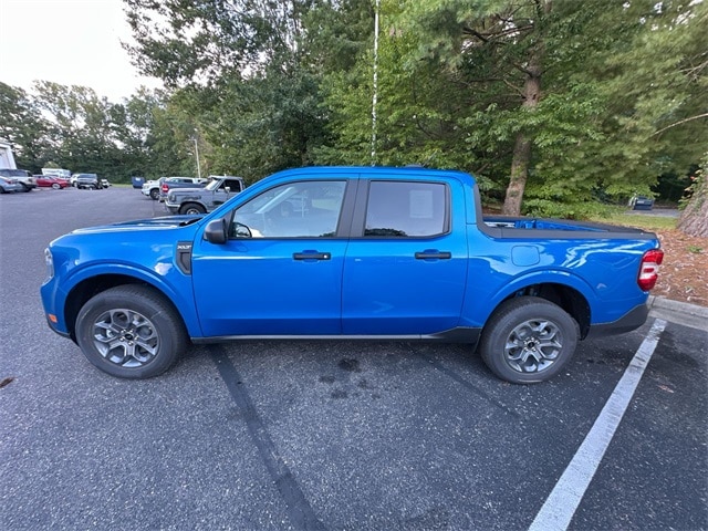 Velocity Blue 2025 Ford Maverick XLT FWD CVT 2.5L I-4 Hybrid 2.5L I-4 Hybrid, 2.91 Axle Ratio, 4-Wheel Disc Brakes, 6 Speakers, ABS brakes, Air Conditioning, Alloy wheels, AM/FM radio: SiriusXM with 360L, Apple CarPlay/Android Auto, Auto High Beams, Auto High-beam Headlights, Automatic temperature control, Bed Tie Down Locking Rails w/2 Locking Brackets, BLIS w/Cross-Traffic Alert, Brake assist, Bumpers: body-color, Compass, Cross Traffic Brake Assist, Delay-off headlights, Driver door bin, Driver vanity mirror, Dual front impact airbags, Dual front side impact airbags, Electronic Stability Control, Emergency communication system: SYNC 4 911 Assist, Equipment Group 300A, Evasive Steering Assist, Exterior Parking Camera Rear, Ford Co-Pilot360 1.0, Front & Rear Floor Liners w/Front Carpet Floor Mats, Front anti-roll bar, Front Bucket Seats, Front Center Armrest, Front reading lights, Front wheel independent suspension, Fully automatic headlights, Illuminated entry, Internet access capable: FordPass Connect 5G, Intersection Assist, Knee airbag, Lane-Keeping System, Low tire pressure warning, Occupant sensing airbag, Outside temperature display, Overhead airbag, Overhead console, Panic alarm, Passenger door bin, Passenger vanity mirror, Power door mirrors, Power Glass Manual-Folding Mirrors, Power Moonroof, Power steering, Power windows, Pre-Collision Assist w/Automatic Emergency Braking, Radio data system, Radio: AM/FM Stereo w/6 Speakers, Rear anti-roll bar, Rear Parking Sensors, Rear seat center armrest, Rear step bumper, Rear-View Camera, Remote keyless entry, Security system, SiriusXM w/360L, Speed control, Speed-sensing steering, Steering wheel mounted audio controls, SYNC 4 w/Enhanced Voice Recognition, Telescoping steering wheel, Tilt steering wheel, Traction control, Trip computer, Unique Cloth Front Bucket Seats, Wheels: 17" Carbonized Gray Painted Aluminum, 2.5L I-4 Hybrid.