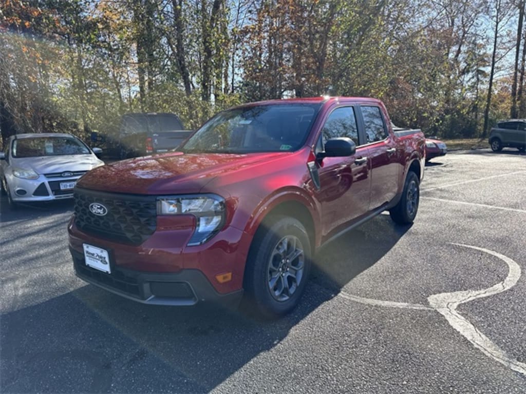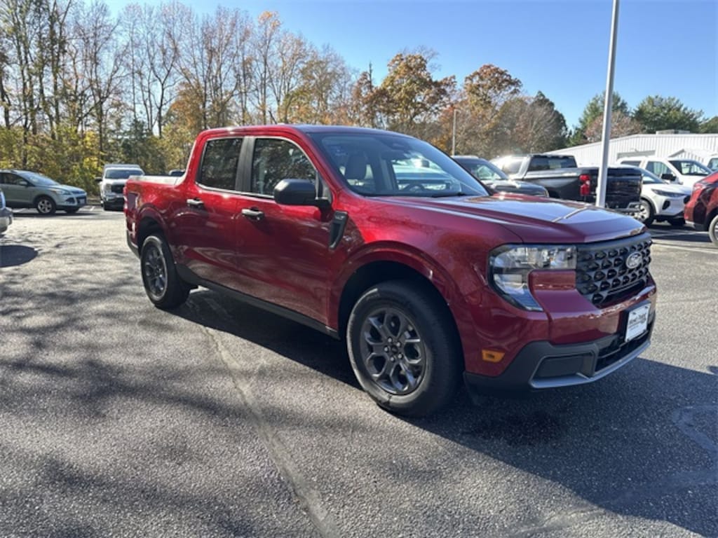 Ruby Red Metallic Tinted Clearcoat 2025 Ford Maverick XLT FWD CVT 2.5L I-4 Hybrid 2.5L I-4 Hybrid, 2.91 Axle Ratio, 4-Wheel Disc Brakes, 6 Speakers, ABS brakes, Air Conditioning, Alloy wheels, AM/FM radio: SiriusXM with 360L, Apple CarPlay/Android Auto, Auto High Beams, Auto High-beam Headlights, Automatic temperature control, Bed Tie Down Locking Rails w/2 Locking Brackets, BLIS w/Cross-Traffic Alert, Brake assist, Bumpers: body-color, Compass, Cross Traffic Brake Assist, Delay-off headlights, Driver door bin, Driver vanity mirror, Dual front impact airbags, Dual front side impact airbags, Electronic Stability Control, Emergency communication system: SYNC 4 911 Assist, Equipment Group 300A, Evasive Steering Assist, Exterior Parking Camera Rear, Ford Co-Pilot360 1.0, Front & Rear Floor Liners w/Front Carpet Floor Mats, Front anti-roll bar, Front Bucket Seats, Front Center Armrest, Front reading lights, Front wheel independent suspension, Fully automatic headlights, Illuminated entry, Intersection Assist, Knee airbag, Lane-Keeping System, Low tire pressure warning, Occupant sensing airbag, Outside temperature display, Overhead airbag, Overhead console, Panic alarm, Passenger door bin, Passenger vanity mirror, Power door mirrors, Power Glass Manual-Folding Mirrors, Power Moonroof, Power steering, Power windows, Pre-Collision Assist w/Automatic Emergency Braking, Radio data system, Radio: AM/FM Stereo w/6 Speakers, Rear anti-roll bar, Rear Parking Sensors, Rear seat center armrest, Rear step bumper, Rear-View Camera, Remote keyless entry, Security system, SiriusXM w/360L, Speed control, Speed-sensing steering, Steering wheel mounted audio controls, SYNC 4 w/Enhanced Voice Recognition, Telescoping steering wheel, Tilt steering wheel, Traction control, Trip computer, Unique Cloth Front Bucket Seats, Wheels: 17" Carbonized Gray Painted Aluminum, 2.5L I-4 Hybrid.