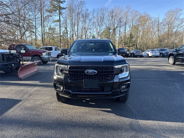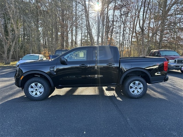 Shadow Black 2025 Ford Ranger XL 4WD 10-Speed Automatic EcoBoost 2.3L I4 GTDi DOHC Turbocharged VCT 4WD, 120V/400W In-Cab & In-Bed Power Outlets, 3.73 Axle Ratio, 4-Wheel Disc Brakes, 6 Speakers, ABS brakes, Air Conditioning, Alloy wheels, AM/FM radio, AM/FM Stereo, Auto High-beam Headlights, Brake assist, Bumpers: body-color, Carpet Floor Covering w/Carpet Floor Mats, Class IV Trailer Hitch Receiver, Cloth Front Bucket Seats, Compass, Delay-off headlights, Driver door bin, Dual front impact airbags, Dual front side impact airbags, Electronic Stability Control, Emergency communication system: SYNC 4 911 Assist, Equipment Group 100A Standard, Front anti-roll bar, Front Bucket Seats, Front Center Armrest, Front fog lights, Front License Plate Bracket, Front reading lights, Front wheel independent suspension, Fully automatic headlights, Halogen Fog Lamps, Illuminated entry, Integrated Trailer Brake Controller, Internet access capable: FordPass Connect 4G, LED Reflector Headlamps, Low tire pressure warning, Occupant sensing airbag, Outside temperature display, Overhead airbag, Overhead console, Panic alarm, Passenger door bin, Power door mirrors, Power steering, Power windows, Rear reading lights, Rear seat center armrest, Rear step bumper, Remote keyless entry, Security system, Speed control, Speed-sensing steering, Steering wheel mounted audio controls, STX Appearance Package, STX Fender Badge, SYNC 4A, Telescoping steering wheel, Tilt steering wheel, Traction control, Trailer Tow Package, Trip computer, Variably intermittent wipers, Voltmeter, Wheels: 17" Silver-Painted Aluminum, 4WD.