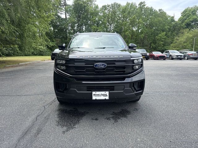 Agate Black Metallic 2026 Ford Expedition Max Active 4WD 10-Speed Automatic EcoBoost 3.5L V6 GTDi DOHC 24V Twin Turbocharged 26mm Engine Radiator, 2nd Row Power-Folding Captain's Chairs, 3.73 Axle Ratio, 360-Degree Zone Lighting, 3rd row seats: split-bench, 3rd Row Vinyl Seats, 4-Door Intelligent Access (Lock/Unlock), 4-Way Manual Head Restraints, 4-Wheel Disc Brakes, 6 Speakers, ABS brakes, Active Air Dam, ActiveX-Trimmed Front Heated Captain's Chairs, Air Conditioning, Alloy wheels, AM/FM radio: SiriusXM with 360L, Apple CarPlay/Android Auto, Auto High-beam Headlights, Auto-dimming Rear-View mirror, Automatic temperature control, BlueCruise (equipment + 1-Year + 90-Day Plan), Brake assist, Bumpers: body-color, Cloth Front Captain's Chairs, Compass, Delay-off headlights, Driver door bin, Driver vanity mirror, Dual front impact airbags, Dual front side impact airbags, Dual Power-Folding Sideview Mirrors with Autofold, Electronic Stability Control, Emergency communication system: 911 Assist, Equipment Group 202A Touring Package, Exterior Parking Camera Rear, Flex Powered Console, Ford Connectivity Package (1-Year Included), Ford Digital Experience, Ford Split Gate, Four wheel independent suspension, Front anti-roll bar, Front Bucket Seats, Front Center Armrest, Front dual zone A/C, Front License Plate Bracket, Front reading lights, Front Side Laminated Glass, Fully automatic headlights, Heated door mirrors, Heated Steering Wheel, Heavy-Duty Trailer Tow, Illuminated entry, Integrated Trailer Brake Control, Intersection Assist, Low tire pressure warning, Memory Driver Seat, Navigation System, Occupant sensing airbag, Outside temperature display, Overhead airbag, Overhead console, Panic alarm, Passenger door bin, Passenger vanity mirror, Power door mirrors, Power driver seat, Power Panoramic Vista Roof with Power Sunshade, Power passenger seat, Power steering, Power Tilt/Telescopic Steering Wheel with Memory, Power windows, Pro Power Onboard - 400W, Radio data system, Radio: AM/FM Stereo with MP3 Capable, Rain Sensitive Windshield Wipers, Rear air conditioning, Rear anti-roll bar, Rear reading lights, Rear window defroster, Rear window wiper, Reclining 3rd row seat, Remote keyless entry, Security system, SiriusXM with 360L, Speed control, Speed-sensing steering, Speed-Sensitive Wipers, Split folding rear seat, Spoiler, Steering wheel mounted audio controls, Tachometer, Telescoping steering wheel, Tilt steering wheel, Traction control, Trip computer, USB Ports, Variably intermittent wipers, Voltmeter, Wheels: 18" x 8.5" Dark Alloy Painted Aluminum, Wheels: 20" x 8.5" Bright Machined Aluminum.