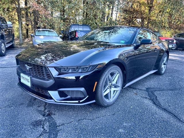 Shadow Black 2026 Ford Mustang EcoBoost RWD 10-Speed Automatic EcoBoost 2.3L I4 GTDi DOHC Turbocharged VCT 1st Row Carpeted Black Floor Mats, 4-Wheel Disc Brakes, ABS brakes, Air Conditioning, Alloy wheels, AM/FM Stereo, Auto High-beam Headlights, Automatic temperature control, Brake assist, Bumpers: body-color, Compass, Delay-off headlights, Driver door bin, Driver vanity mirror, Dual front impact airbags, Dual front side impact airbags, Electronic Stability Control, Emergency communication system: 911 Assist, Exterior Parking Camera Rear, Four wheel independent suspension, Front anti-roll bar, Front Bucket Seats, Front Center Armrest, Front dual zone A/C, Front reading lights, Fully automatic headlights, Illuminated entry, Knee airbag, Leather Shift Knob, Low tire pressure warning, Occupant sensing airbag, Outside temperature display, Overhead airbag, Overhead console, Panic alarm, Passenger door bin, Passenger vanity mirror, Power door mirrors, Power steering, Power windows, Radio data system, Rain sensing wipers, Rear anti-roll bar, Rear Parking Sensors, Rear window defroster, Remote keyless entry, Speed control, Speed-sensing steering, Speed-Sensitive Wipers, Split folding rear seat, Sport steering wheel, Steering wheel mounted audio controls, SYNC 4, Tachometer, Telescoping steering wheel, Tilt steering wheel, Traction control, Trip computer, Variably intermittent wipers, Voltmeter, Wheels: 19" x 8.5" Premier Polished Aluminum.