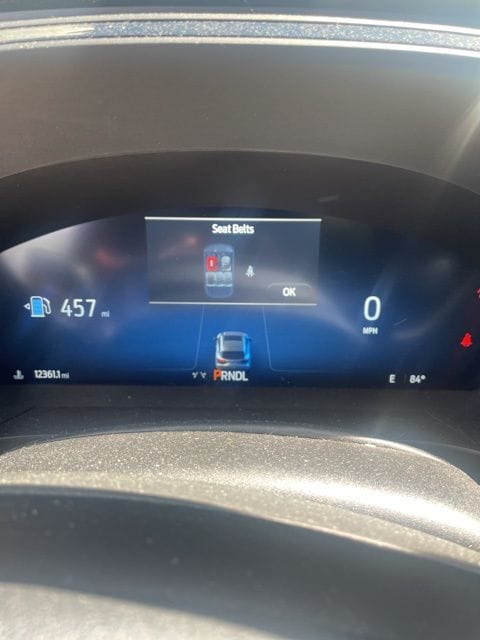 Equipment Group 500A (Electronic Fuel Door Release, Neutral Towing Capability, and Pedestrian Alert Sounder), 2.91 Axle Ratio, 4-Wheel Disc Brakes, 6 Speakers, ABS brakes, Air Conditioning, Alloy wheels, AM/FM radio: SiriusXM, AM/FM Stereo, Auto High-beam Headlights, Auto-dimming Rear-View mirror, Automatic temperature control, Brake assist, Bumpers: body-color, Compass, Delay-off headlights, Driver door bin, Driver vanity mirror, Dual front impact airbags, Dual front side impact airbags, Electronic Stability Control, Emergency communication system: SYNC 4 911 Assist, Exterior Parking Camera Rear, FordPass Connect, Four wheel independent suspension, Front anti-roll bar, Front Bucket Seats, Front Center Armrest, Front dual zone A/C, Front fog lights, Front License Plate Bracket, Front reading lights, Fully automatic headlights, Garage door transmitter, Heated door mirrors, Heated front seats, Heated steering wheel, Heated Vinyl/Cloth Front Sport Contour Bucket Seats, Illuminated entry, Knee airbag, Low tire pressure warning, Memory seat, Navigation system: Connected Navigation, Occupant sensing airbag, Outside temperature display, Overhead airbag, Overhead console, Panic alarm, Passenger door bin, Passenger vanity mirror, Power door mirrors, Power driver seat, Power Liftgate, Power passenger seat, Power steering, Power windows, Radio data system, Rain sensing wipers, Rear anti-roll bar, Rear reading lights, Rear seat center armrest, Rear window defroster, Rear window wiper, Remote keyless entry, Security system, Speed control, Speed-sensing steering, Speed-Sensitive Wipers, Split folding rear seat, Spoiler, Sport steering wheel, Steering wheel mounted audio controls, SYNC 4 w/Enhanced Voice Recognition, Telescoping steering wheel, Tilt steering wheel, Traction control, Trip computer, Variably intermittent wipers, and Wheels: 19" Machined-Face Ebony-Painted Aluminum.