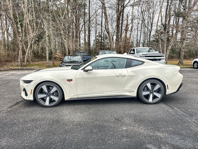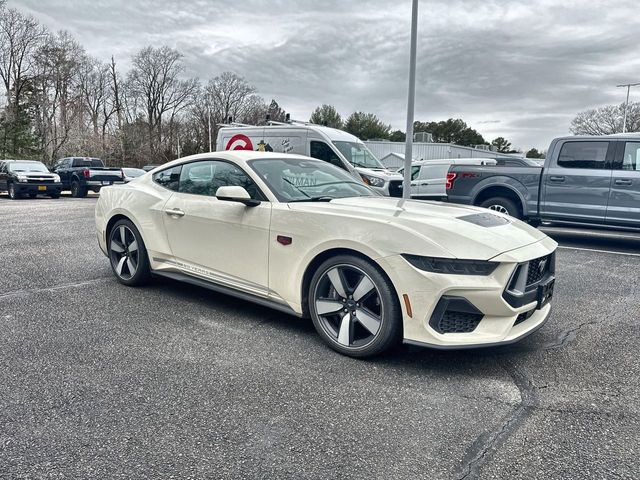 Wimbledon White 2025 Ford Mustang GT Premium RWD 10-Speed Automatic 5.0L V8 Ti-VCT 3.55 Limited Slip Rear Axle, 4-Wheel Disc Brakes, 60th Anniversary Package, ABS brakes, Active Valve Performance Exhaust, Air Conditioning, Alloy wheels, AM/FM Stereo, Anniversary Special Edition Badge, Auto High-beam Headlights, Automatic temperature control, B&O Sound System by Bang & Olufsen w/12 Speakers, Brake assist, Brembo Brake System, Brembo Brake System w/Performance Linings, Bumpers: body-color, Compass, Delay-off headlights, Driver door bin, Driver vanity mirror, Dual front impact airbags, Dual front side impact airbags, Electronic Stability Control, Emergency communication system: 911 Assist, Equipment Group 401A High Package, Exterior Parking Camera Rear, Four wheel independent suspension, Front anti-roll bar, Front Bucket Seats, Front Center Armrest, Front dual zone A/C, Front reading lights, Fully automatic headlights, Illuminated Door-Sill Scuff Plates, Illuminated entry, Internet access capable: FordPass Connect, Knee airbag, Leather Shift Knob, Leather steering wheel, Leather-Trimmed Bucket Seats w/Color Accents, Low tire pressure warning, Occupant sensing airbag, Outside temperature display, Overhead airbag, Overhead console, Painted High Gloss Black Honeycomb Grille, Panic alarm, Passenger door bin, Passenger vanity mirror, Power door mirrors, Power steering, Power windows, Radio data system, Rain sensing wipers, Rear anti-roll bar, Rear Parking Sensors, Rear window defroster, Remote keyless entry, Speed control, Speed-sensing steering, Speed-Sensitive Wipers, Split folding rear seat, Spoiler, Sport steering wheel, Steering wheel mounted audio controls, SYNC 4, Tachometer, Telescoping steering wheel, Tilt steering wheel, Traction control, Trip computer, Variably intermittent wipers, Voltmeter.